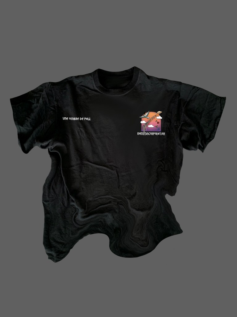 T-shirt noir avec gros logo dans le dos « Une ombre de paix ». Collection été 2023