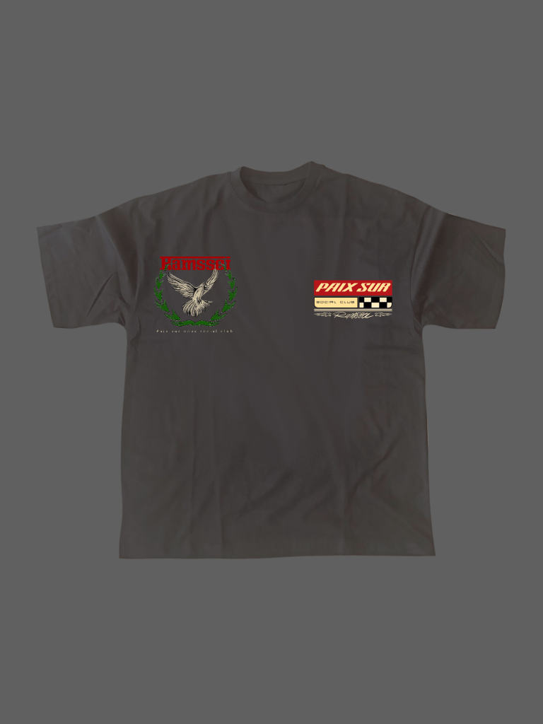 Ce T-shirt est le résultat d’une pensée pacifiste, une envie de regrouper un maximum de personnes dans un club unique, celui de la paix. Relatant les couleurs des peuples opprimés à travers le monde, ce T-shirt vient réunir tous ceux qui souhaitent l’armistice; sous un même uniforme de qualité pretium.