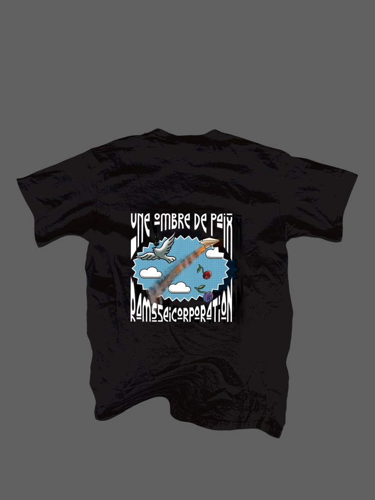 T-shirt rose avec gros logo bleu dans le dos « Une ombre de paix ». Collection été 2023