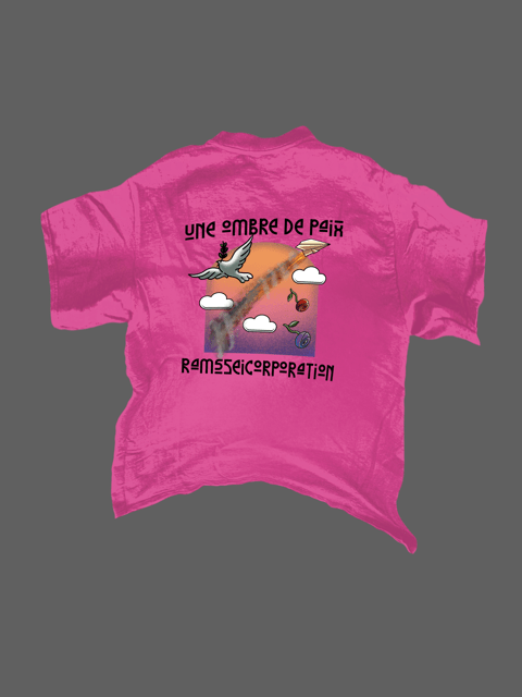 T-shirt rose avec gros logo dans le dos « Une ombre de paix ». Collection été 2023