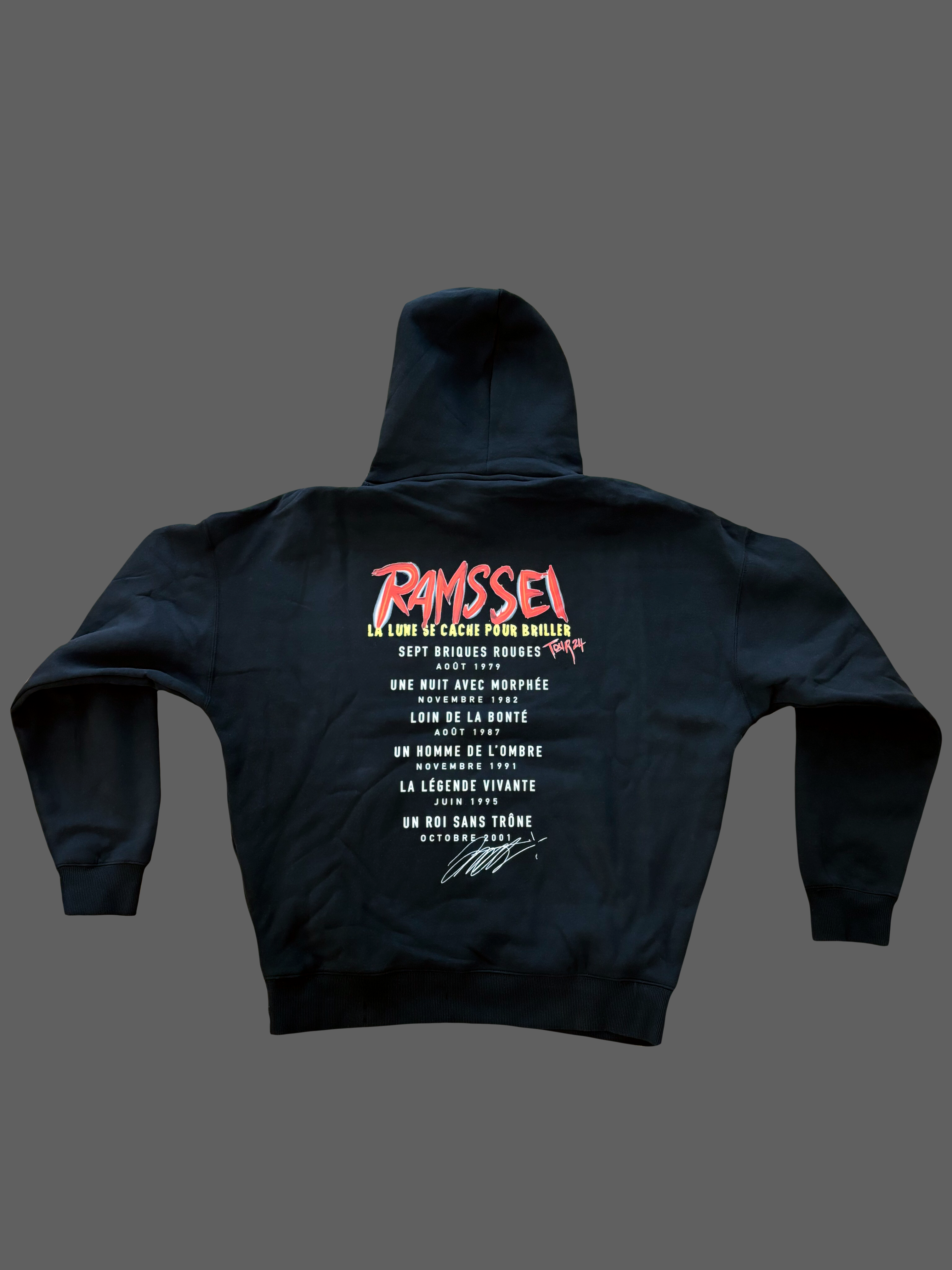 Ce Hoodie est un hommage au roi de la pop. La modestie et la determination de cet artiste hors du commun ont tant inspirées la marque depuis sa création. Il était donc nécessaire que 15 ans après la disparition de cette légende, Ramssei dédie une collection entière à cette lune qui s’est toujours cachée pour briller. Cette collection a été faite avec un esprit de paix et un message de monde meilleur, un message que M.J s’est toujours efforcé de faire passer à travers son art.